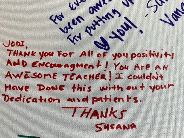 Jodi, Thank you for all of your positivity and encouragement! You are an awesome teacher! I couldn't have done this without your dedication & patience. - Susan