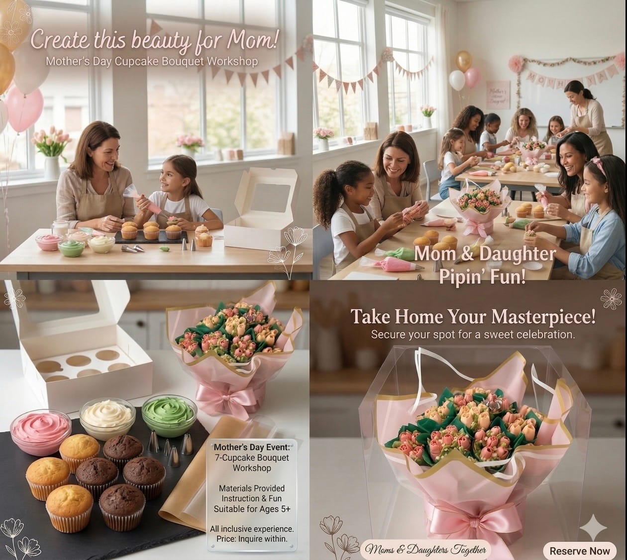 This workshop is specifically crafted for mothers and daughters (ages 10 and up) to work side-by-side, mastering the elegant art of floral buttercream piping.